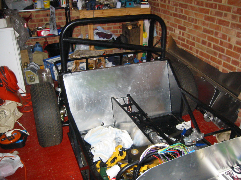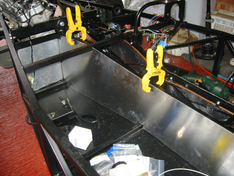 July 2002 - Page 2 July 2002 - Page 1Sunday 21st Trial-fitted the exhaust manifold and took lots of measurements in preparation for cutting the exit hole in the side panel. Trial-fitted the rear bulkhead panel and cut holes for the handbrake guides and to enable access to the lower wishbone bolts. At first I tried using a 'drillsaw' drillbit, but it didn't work very well so I reverted to the old-fashioned 'drill lots of holes and finish off with a file' method. Also, finally bolted down the rollbar! Tuesday 23th Trial-fitted the prop. It was slightly too long, even with the 'slidey' bit at its shortest position. I may be able to move the diff back a few mm, but if not I will have to get a shorter prop made up. Wednesday 24th Managed to re-position the diff about a cm further back in the chassis by drilling new holes in the rear mounting brackets. Trial-fitted the prop again and everything looks good. Thursday 25th Phoned Ian at ST about the prop and he said that the diff does need to be positioned as far back as possible for a ZX-9R installation, however, he said he would exchange the prop if necessary. Bought 27mm and 32mm sockets to tighten up the prop flange nut. The Haynes manual says that the sprocket nut should be tightened to 125Nm (what happened to good old lbft?) so I assumed this would also be right for the prop flange adapter in the 4-wheeled version. I fitted two of the prop bolts and jammed a screwdriver between them to enable the appropriate torque to be applied to the flange nut. Ordered an SVA manual from the Vehicle Inspectorate Agency. Friday 26th SVA Manual arrived. Who says the government is not efficient? (I do actually...) It even has a picture of a Westfield on the cover. I have to say, it is very well laid out and easy to understand and there is nothing so far that I am worried about on my car.